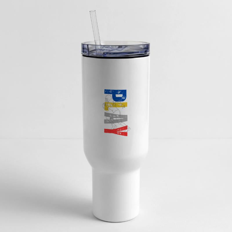 - Travel tumbler with lid and handle