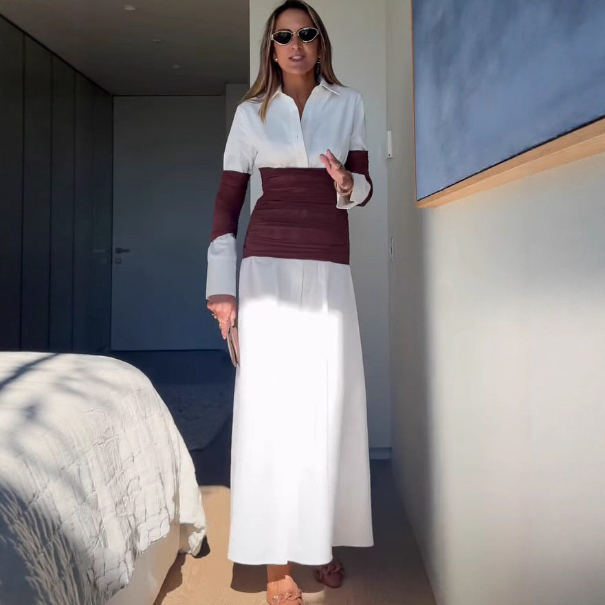 Women's patchwork split collar dress